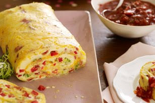 Roll up omelet immediately, starting at one short end and peeling off paper as omelet is rolled. Place on platter; cut into slices. Serve with salsa.